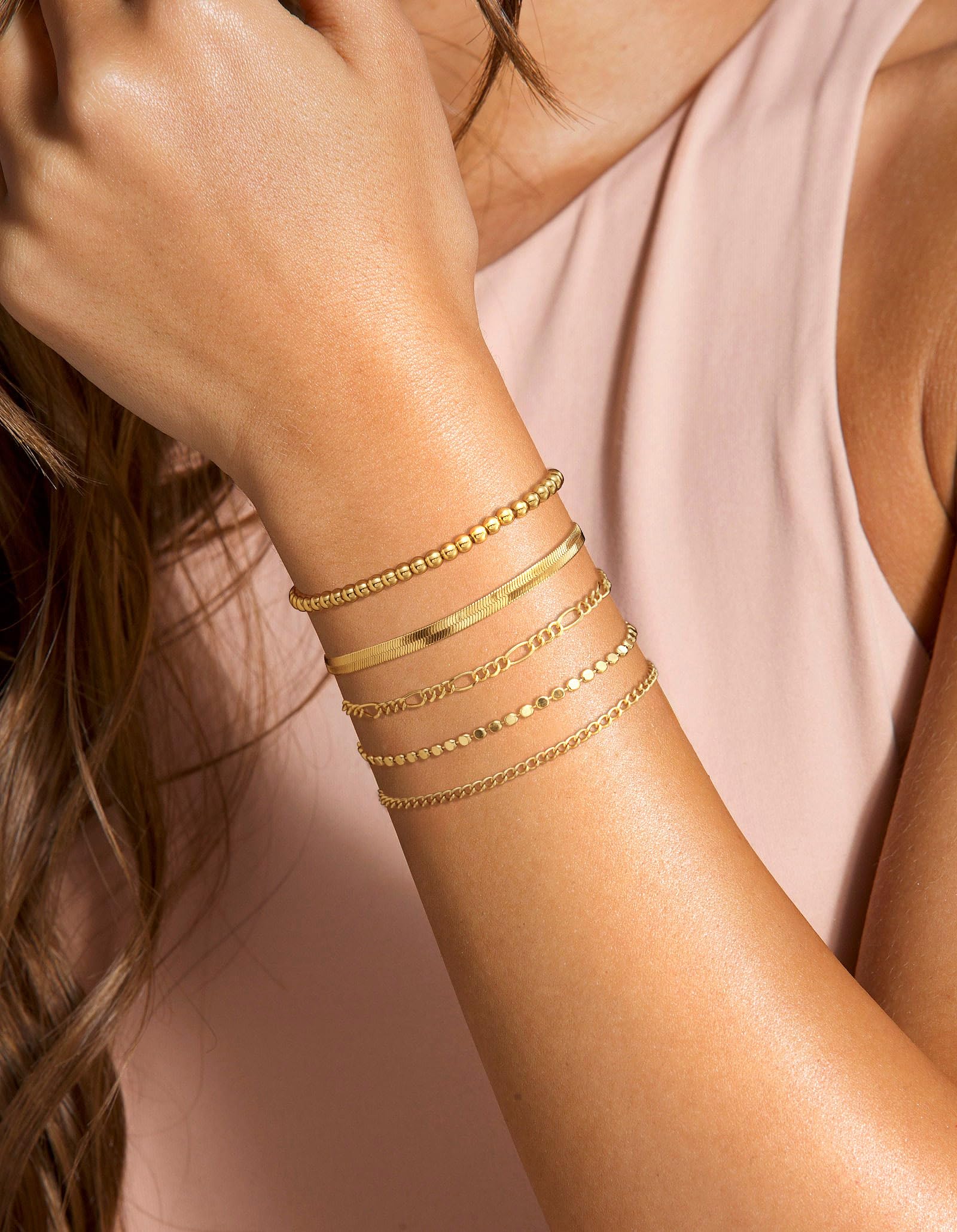 - Alluring Gold Bracelets Collection: Comprises Satellite Bracelets, Figaro Bracelets, Box Chain Bracelets, Paperclip Bracelets, Satellite Bracelets, and Rope Bracelets. Ideal for both layering and solo wear, adding a touch of elegance.